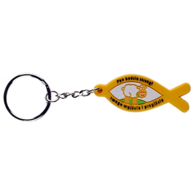 Breloczek jest wykonany z grubego tworzywa PVC. Posiada metalowe kółko.