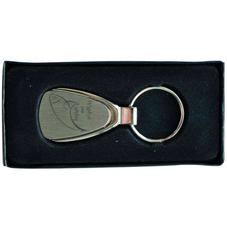 Breloczek metalowy z grawerowanym napisem "Bogu ufam"