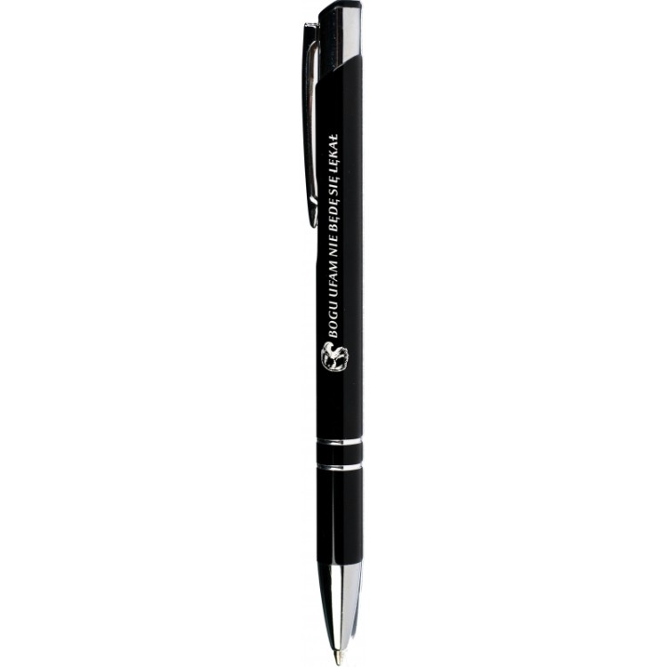 Długopis metalowy z grawerowanym napisem "Bogu ufam".