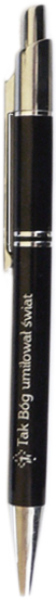 Długopis metalowy z grawerowanym napisem Tak Bóg Umiłował Świat.