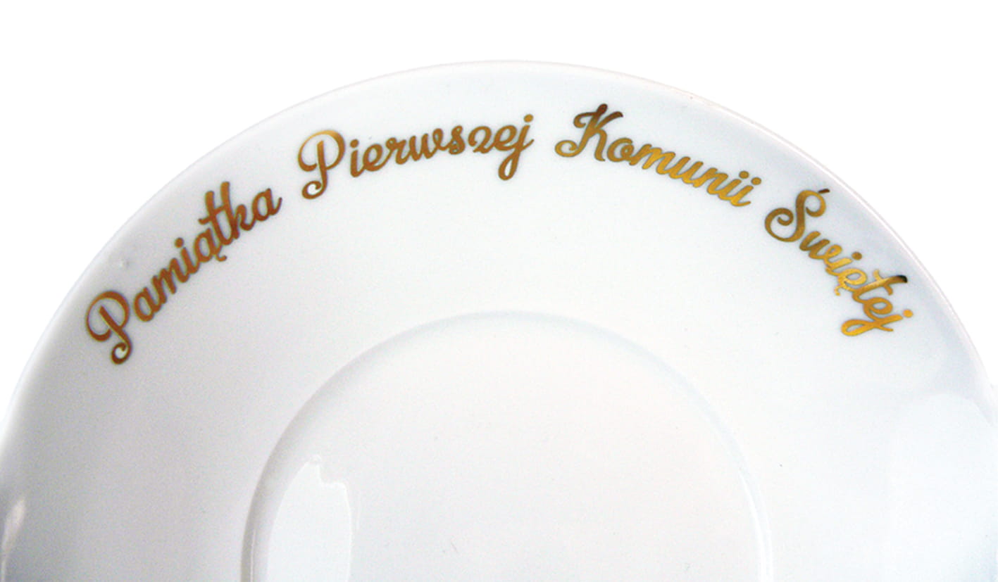 Porcelanowa filiżanka ze spodkiem. Pamiątka Pierwszej Komunii Świętej.