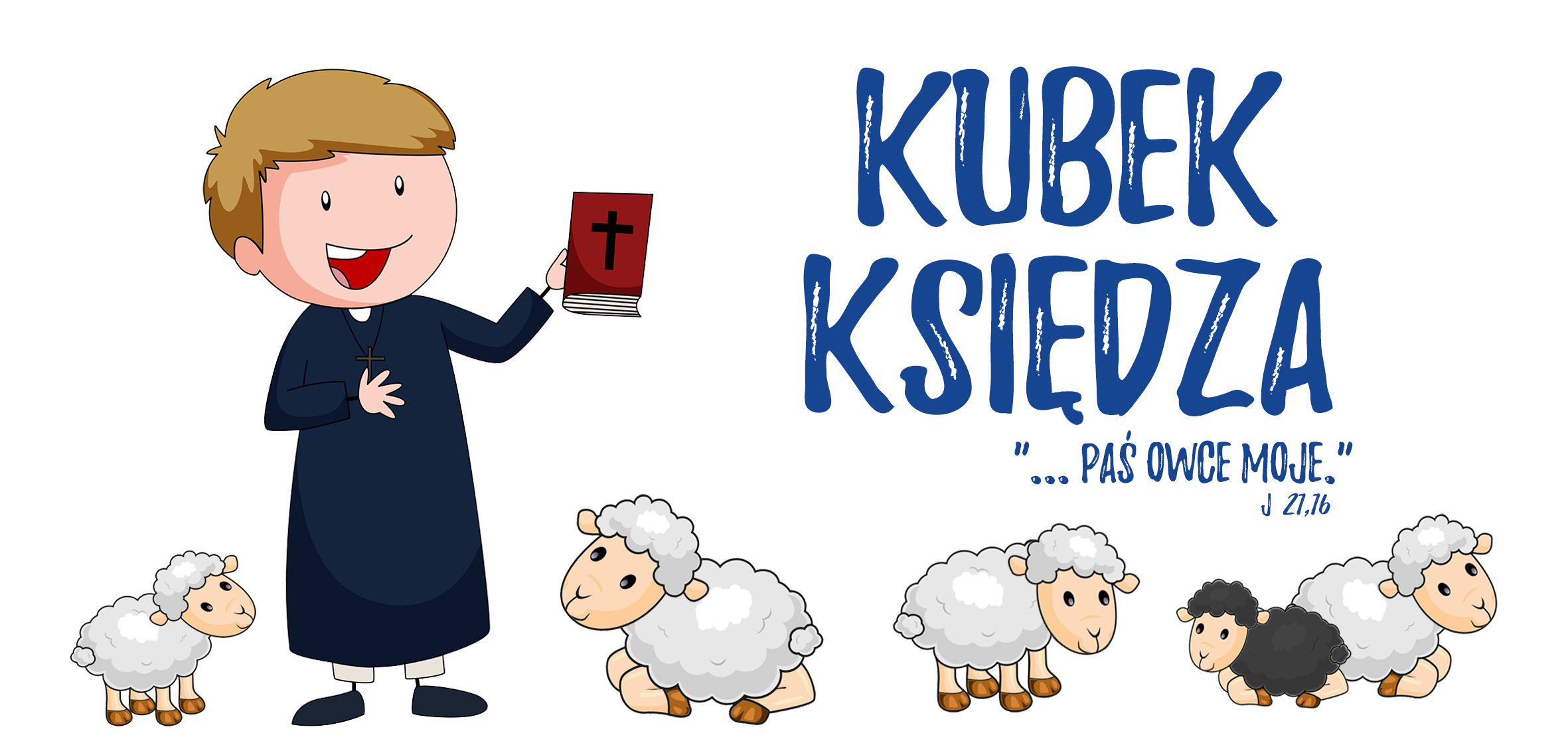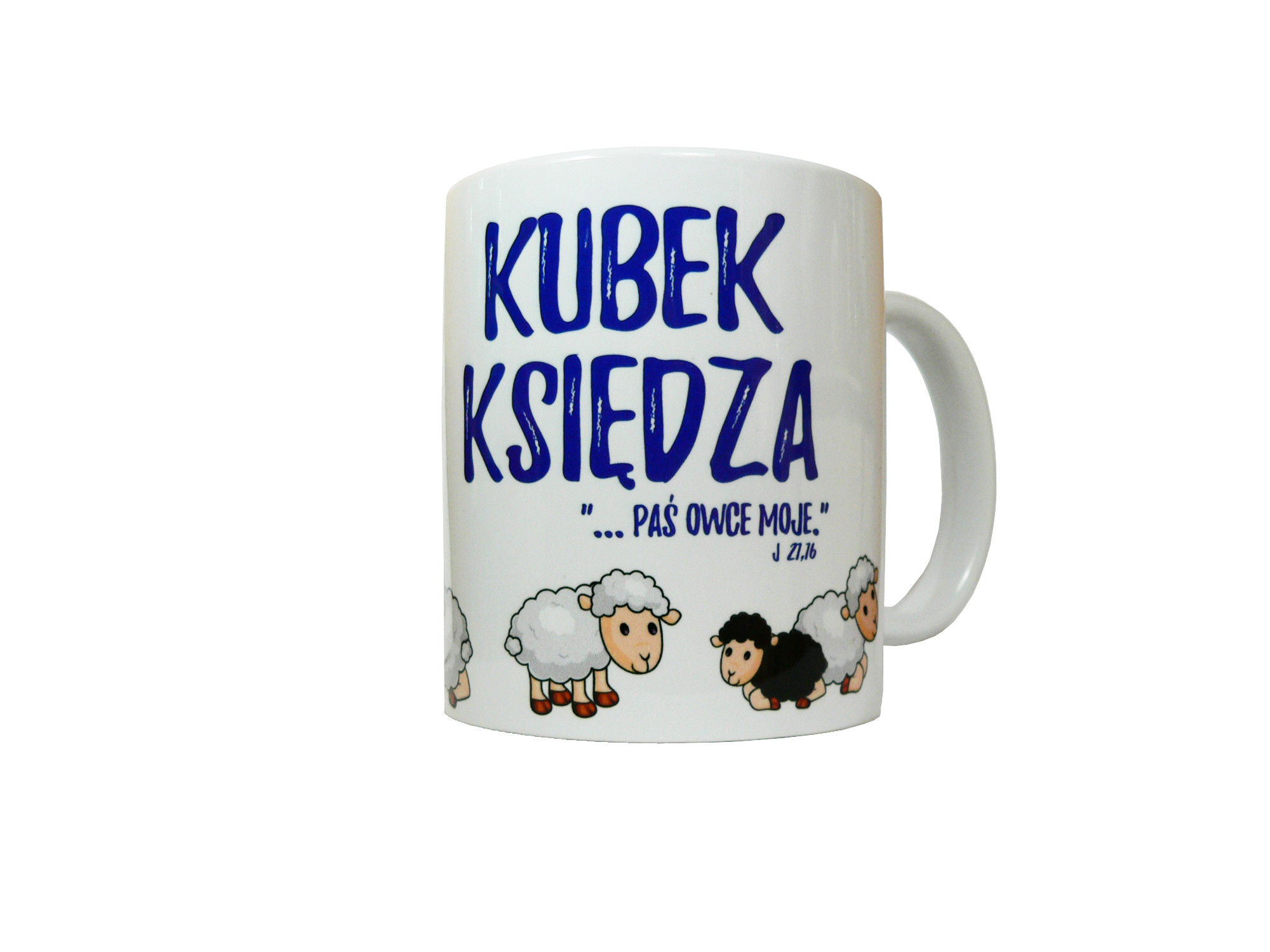 Napis: KUBEK KSIĘDZA , "...paś owce moje.."