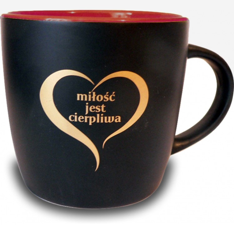 Kubek beczka nr. 10 w kolorze czarnym z jednostronnym nadrukiem serca.