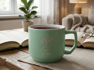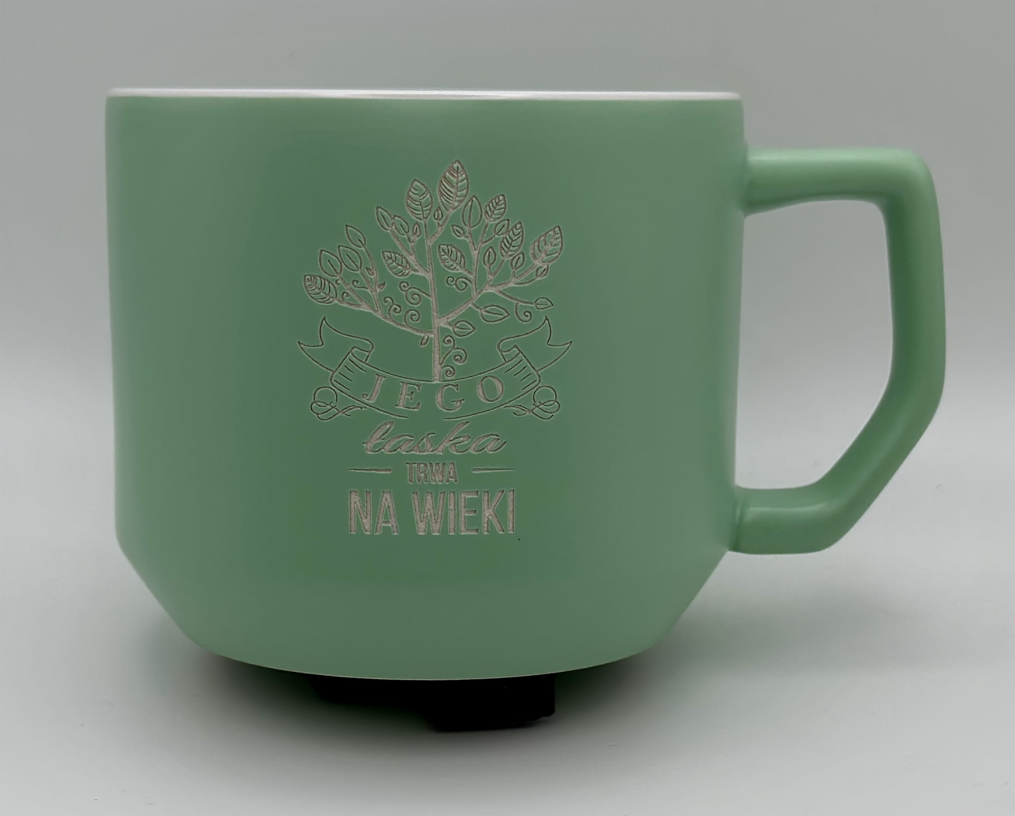 Kubek beczka zielony "Jego łaska trwa na wieki"
