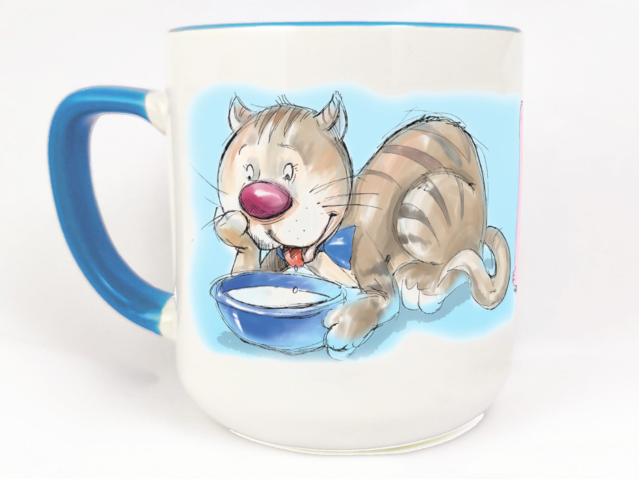 Kubek ceramiczny z kolorowym wnętrzem i rączką, nadruk kolor.