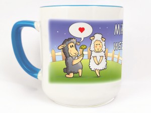 Kubek ceramiczny z kolorowym wnętrzem i rączką, nadruk kolor.