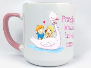 Kubek ceramiczny z kolorowym wnętrzem i rączką, nadruk kolor.