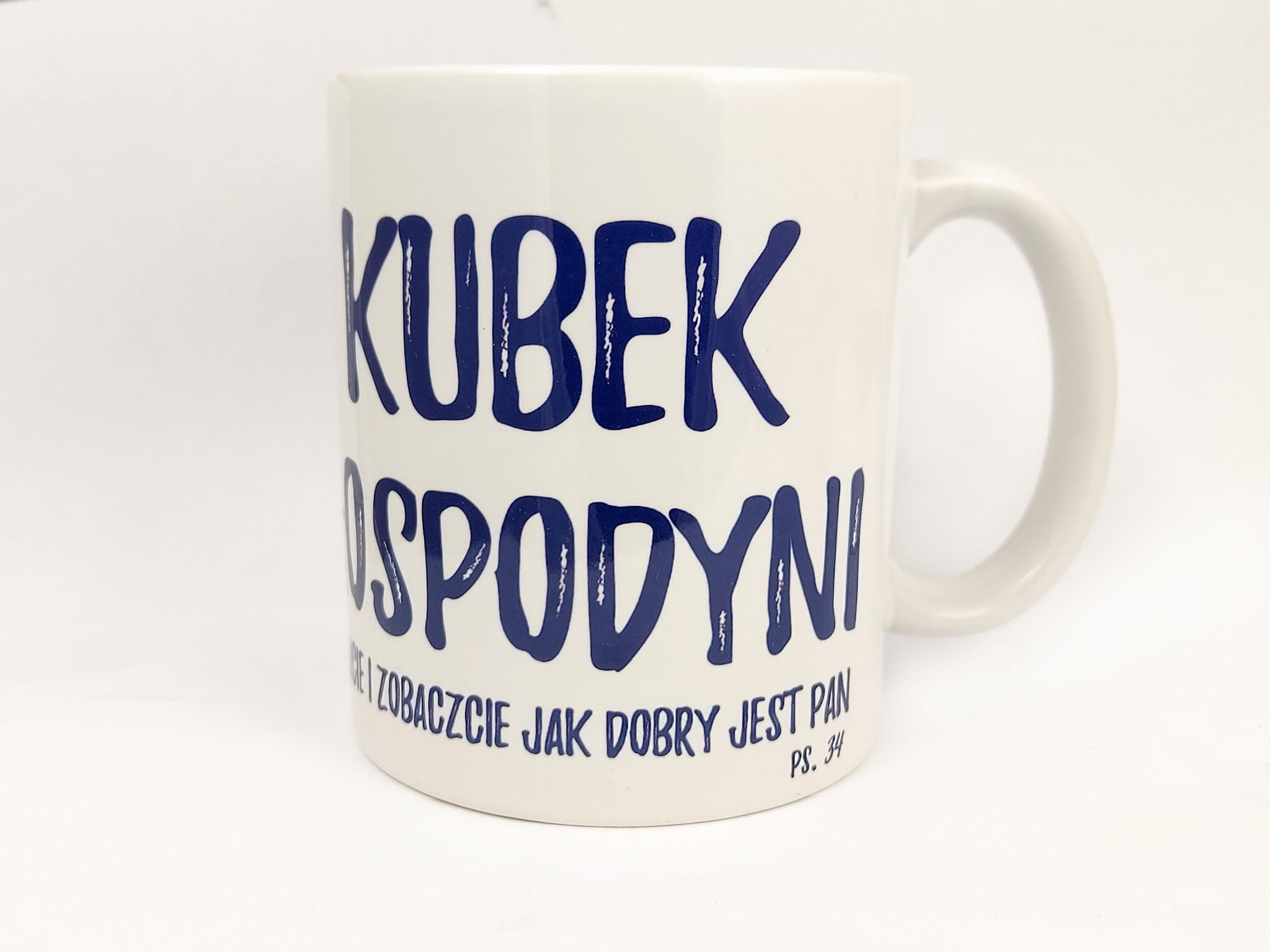 Napis: Kubek gospodyni - "Skosztujcie i zobaczcie jak dobry jest Pan"