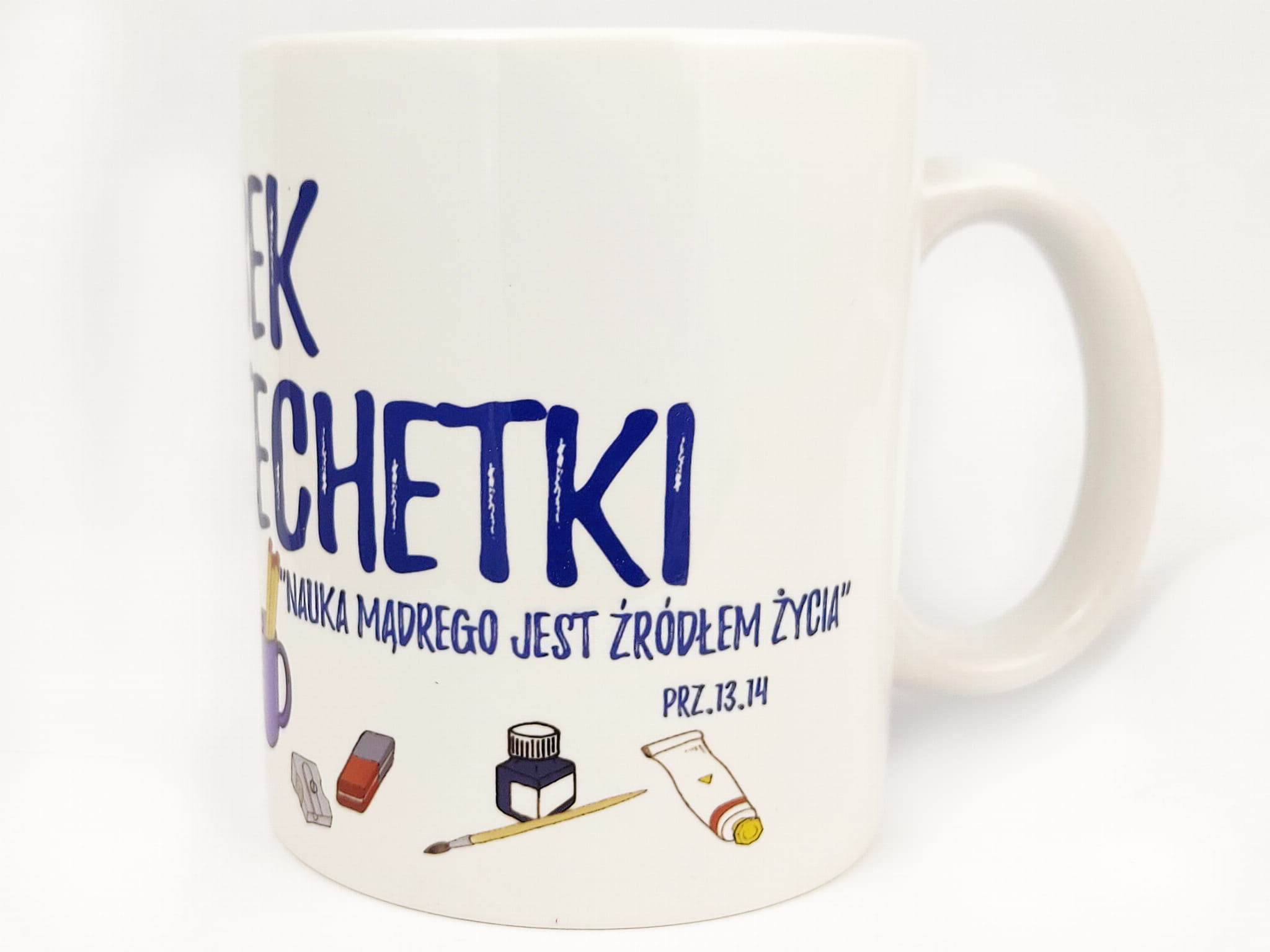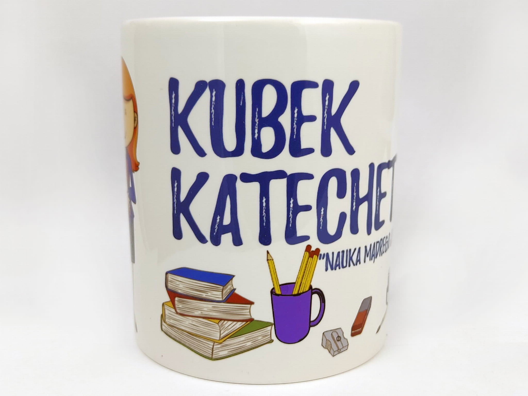 Napis: Kubek katechetki, "Nauka mądrego jest źródłem życia"