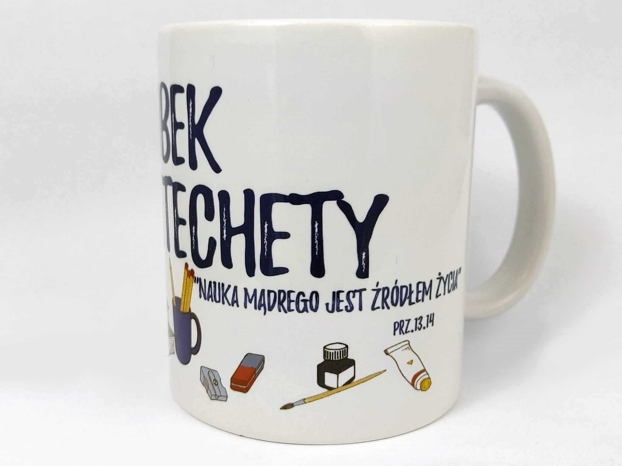 Napis: Kubek katechety , "Nauka mądrego jest źródłem życia"