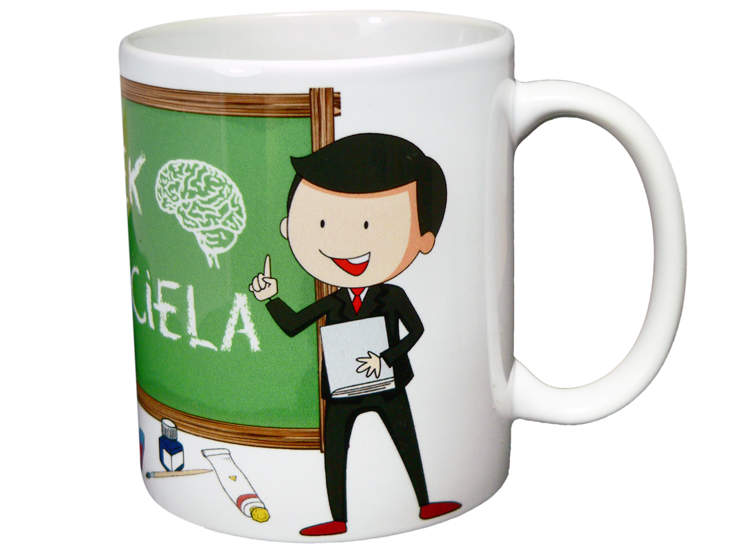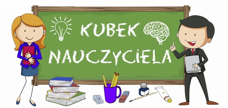 Napis: Kubek nauczyciela, rysunek