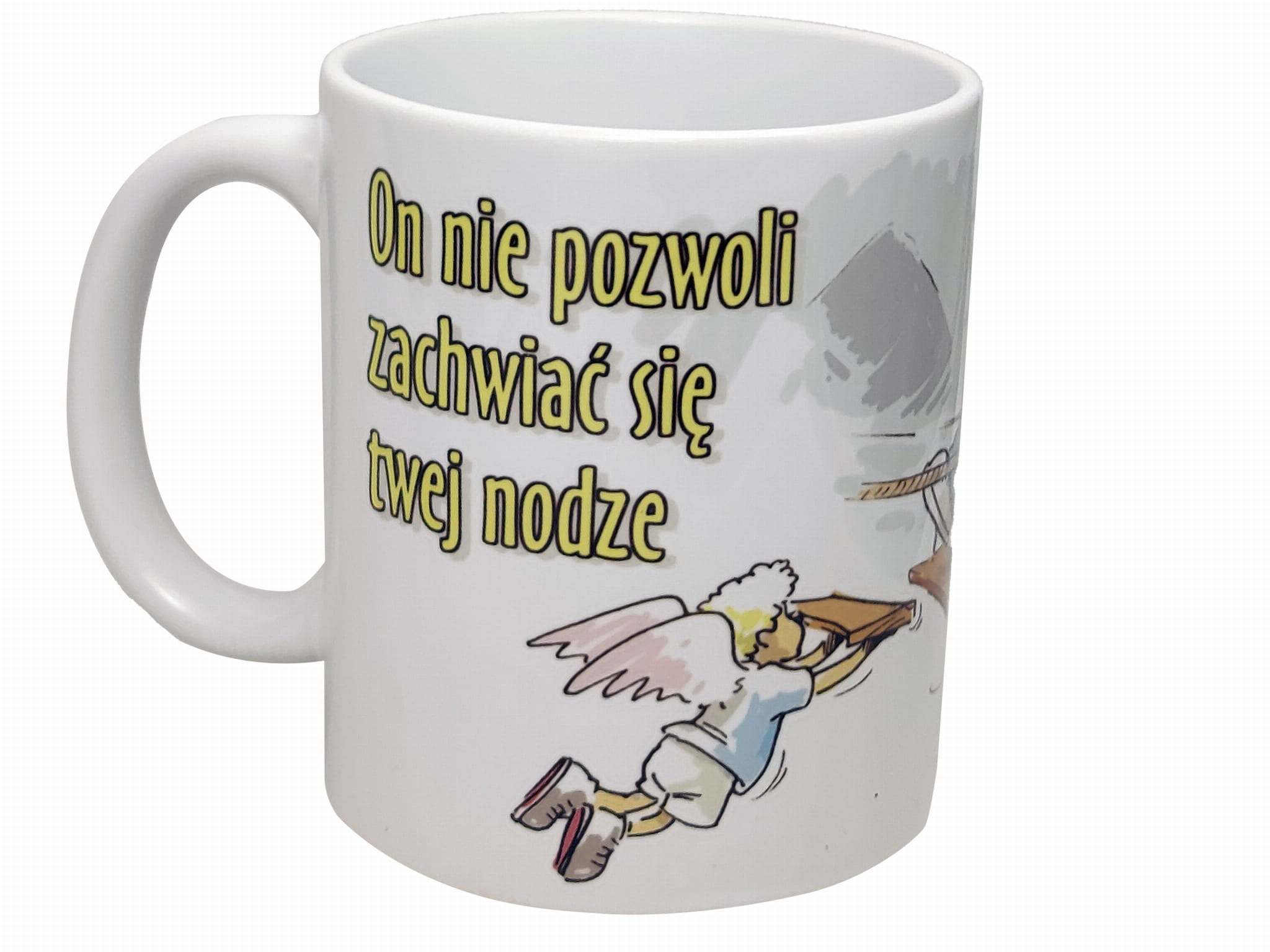 Napis: On nie pozwoli zachwiać się twojej nodze