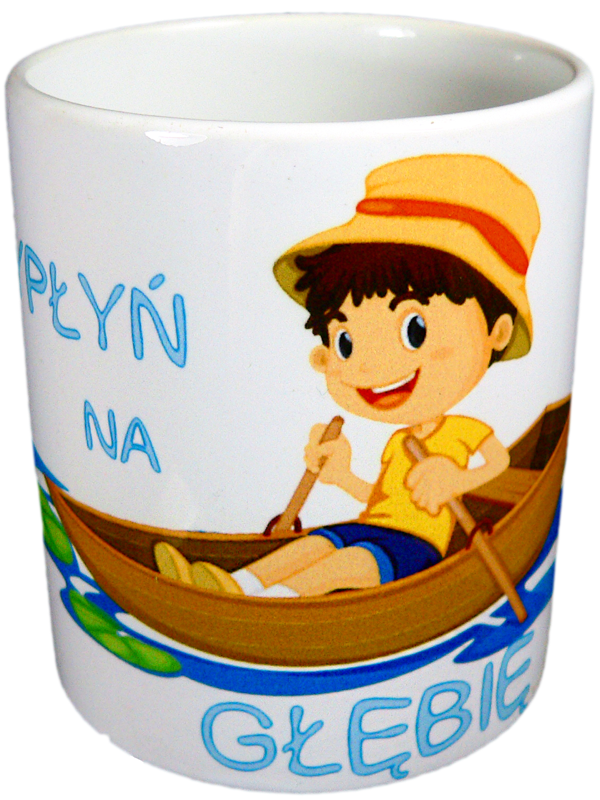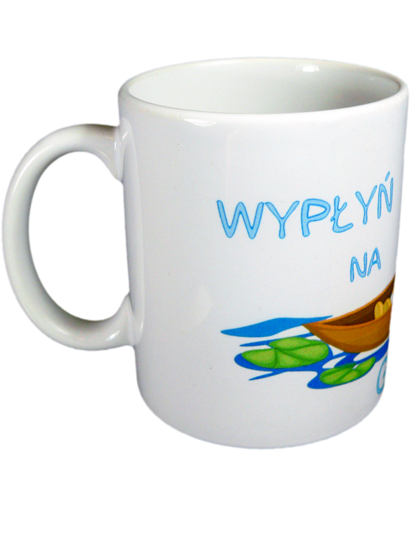 Kubek nr. 30 w kolorze białym z kolorowym nadrukiem.