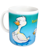 Kubek nr. 40 w kolorze białym z kolorowym nadrukiem.