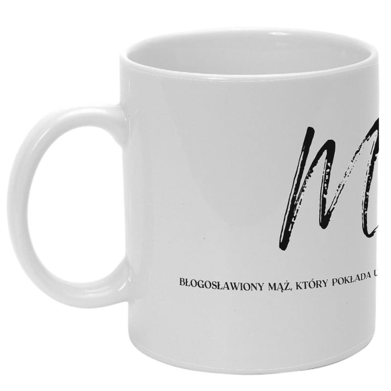 Kubek porcelanowy z nadrukiem.