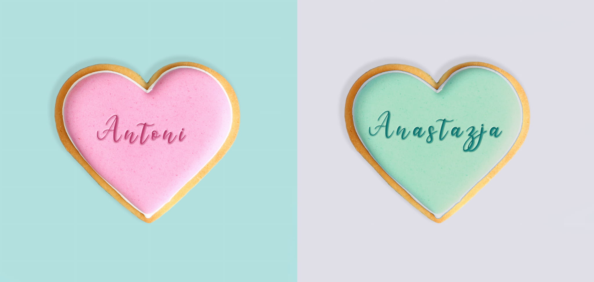 Kubek walentynkowy imiona w sercach różowo/turkusowe
