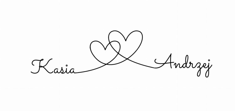 Kubek z imionami wpisanymi w serca w kolorze białym z czarnym nadrukiem.