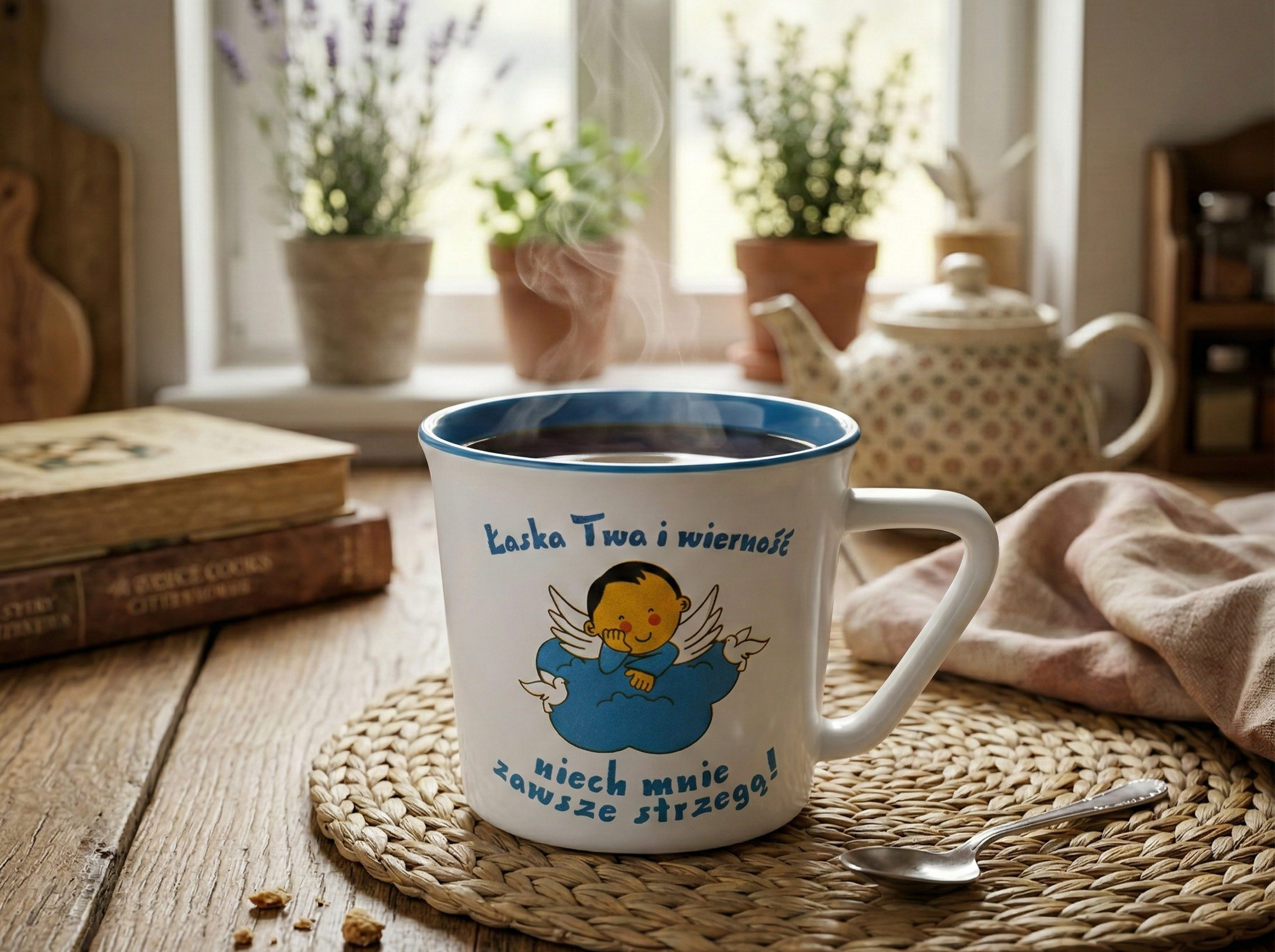 "Łaska Twa i wierność..." kubek kielichowaty, niebieski