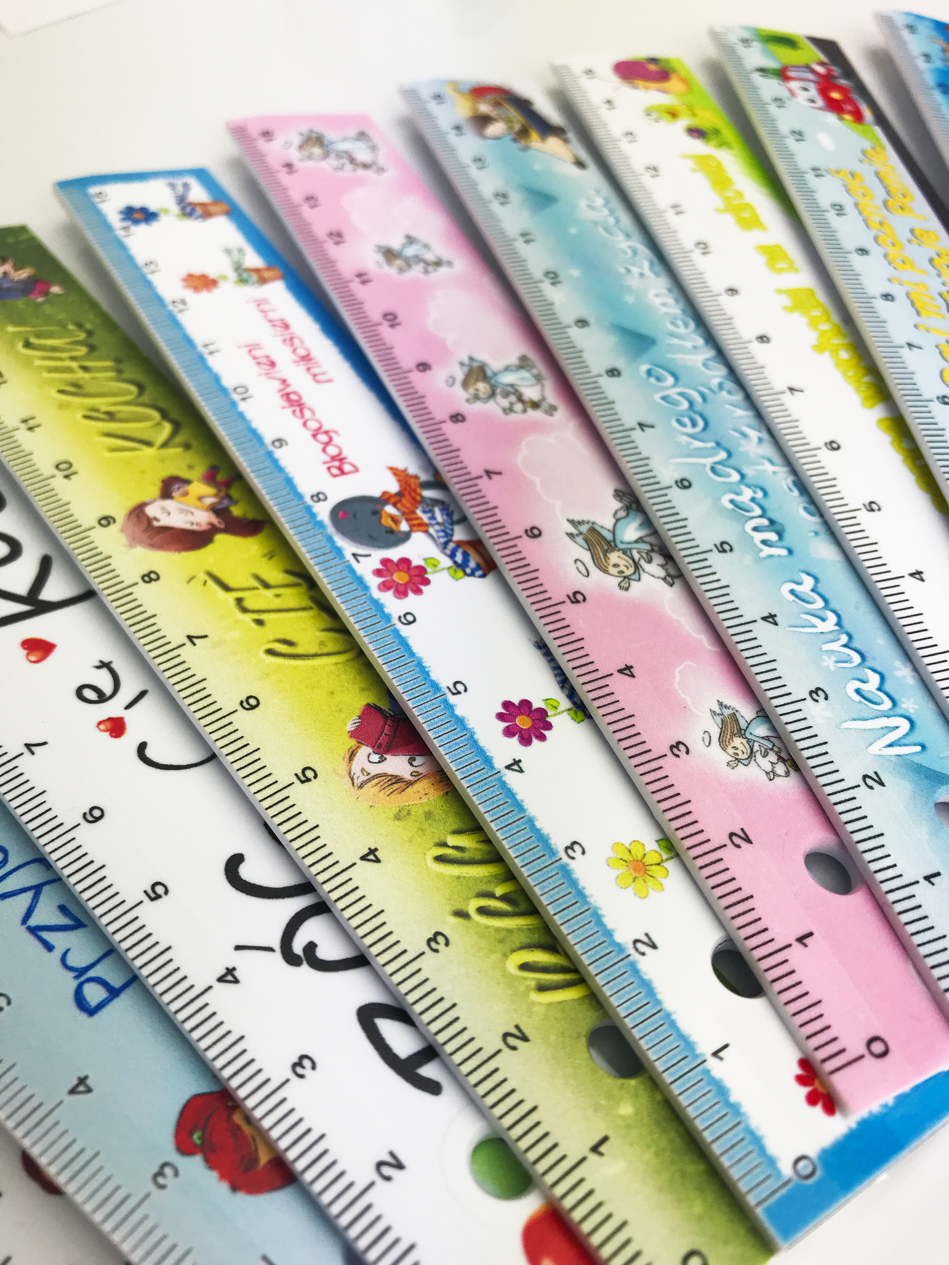 Dostępna w 14 wzorach, linijka z otworkiem o średnicy 5mm.
