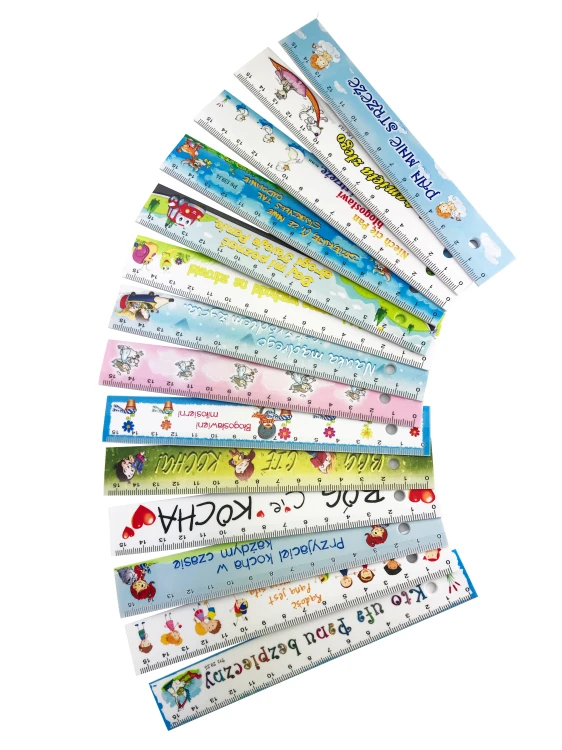 Linijka z kolorowym nadrukiem i podziałką 15 cm.