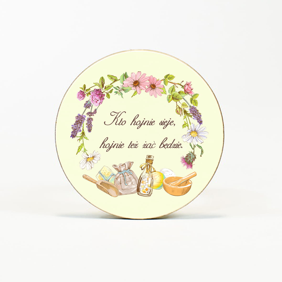 Magnes drewniany okrągły "Kto hojnie sieje"