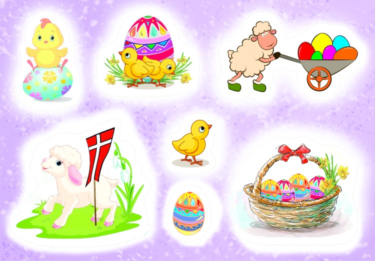 Zestaw samoprzylepnych naklejek o tematyce wielkanocnej.