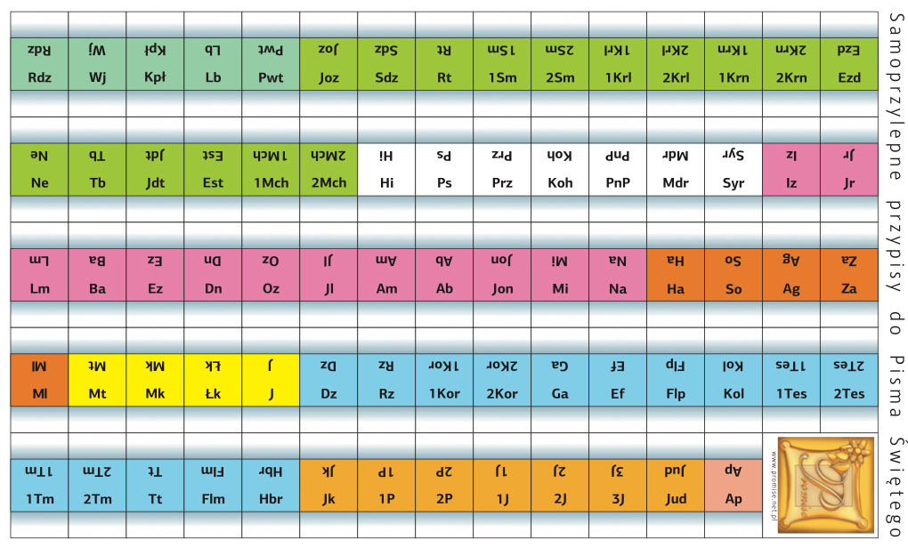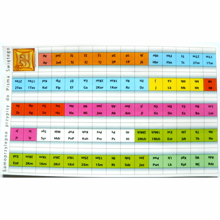 Dzięki temu łatwo będziesz mógł znaleźć księgi w Pismie Świętym. Wykonana z folii samoprzylepnej.