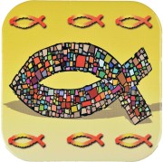 Podstawki pod kubek wykonane są z naturalnego korka, wykończone błyszczącą folią.
