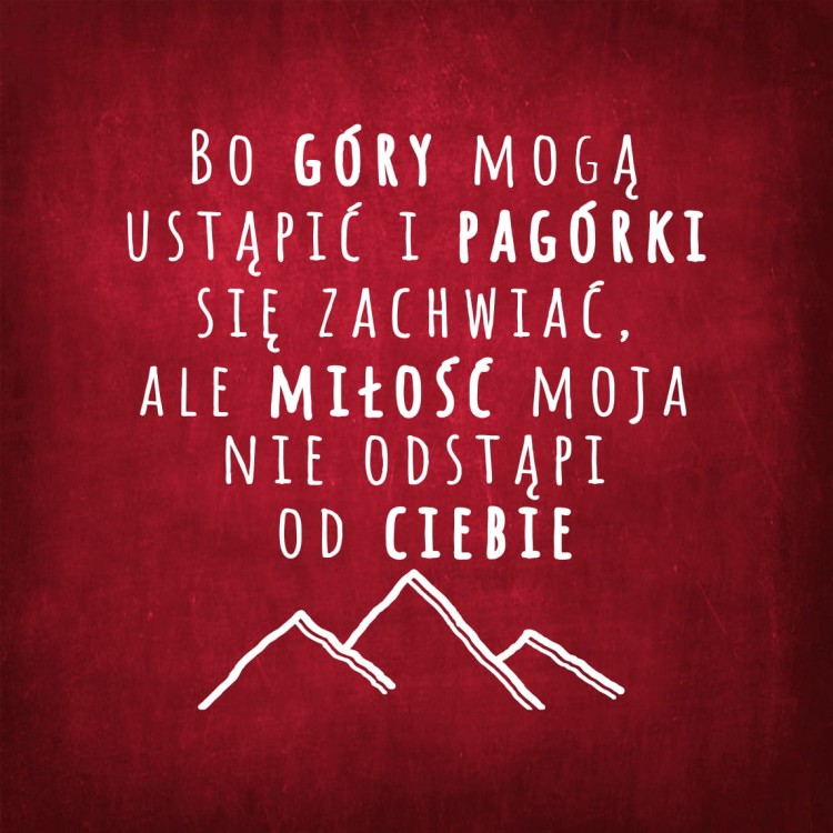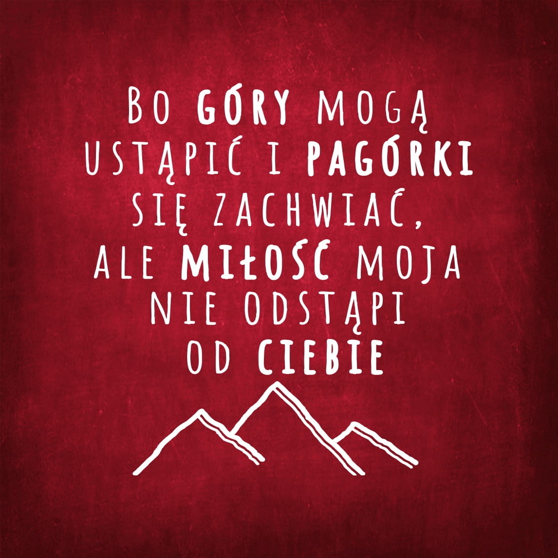 "BO GÓRY MOGĄ USTĄPIĆ I PAGÓRKI SIĘ ZACHWIAĆ, ALE MIŁOŚĆ MOJA NIE ODSTĄPI OD CIEBIE"