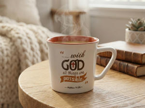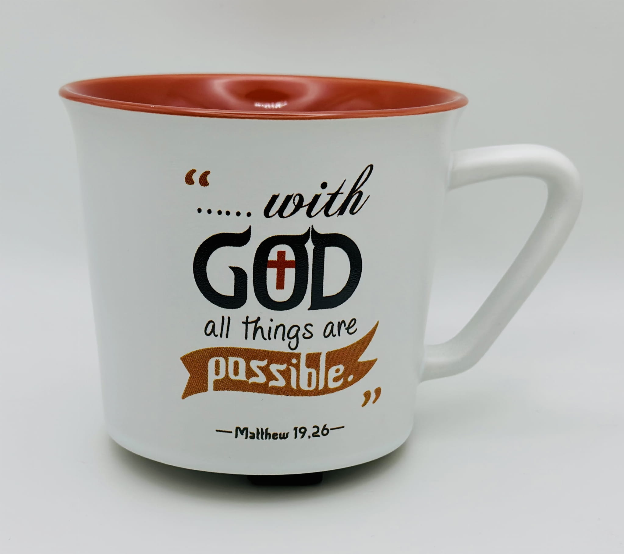 "With God ..." kubek kielichowaty, ciemy pomarańczowy