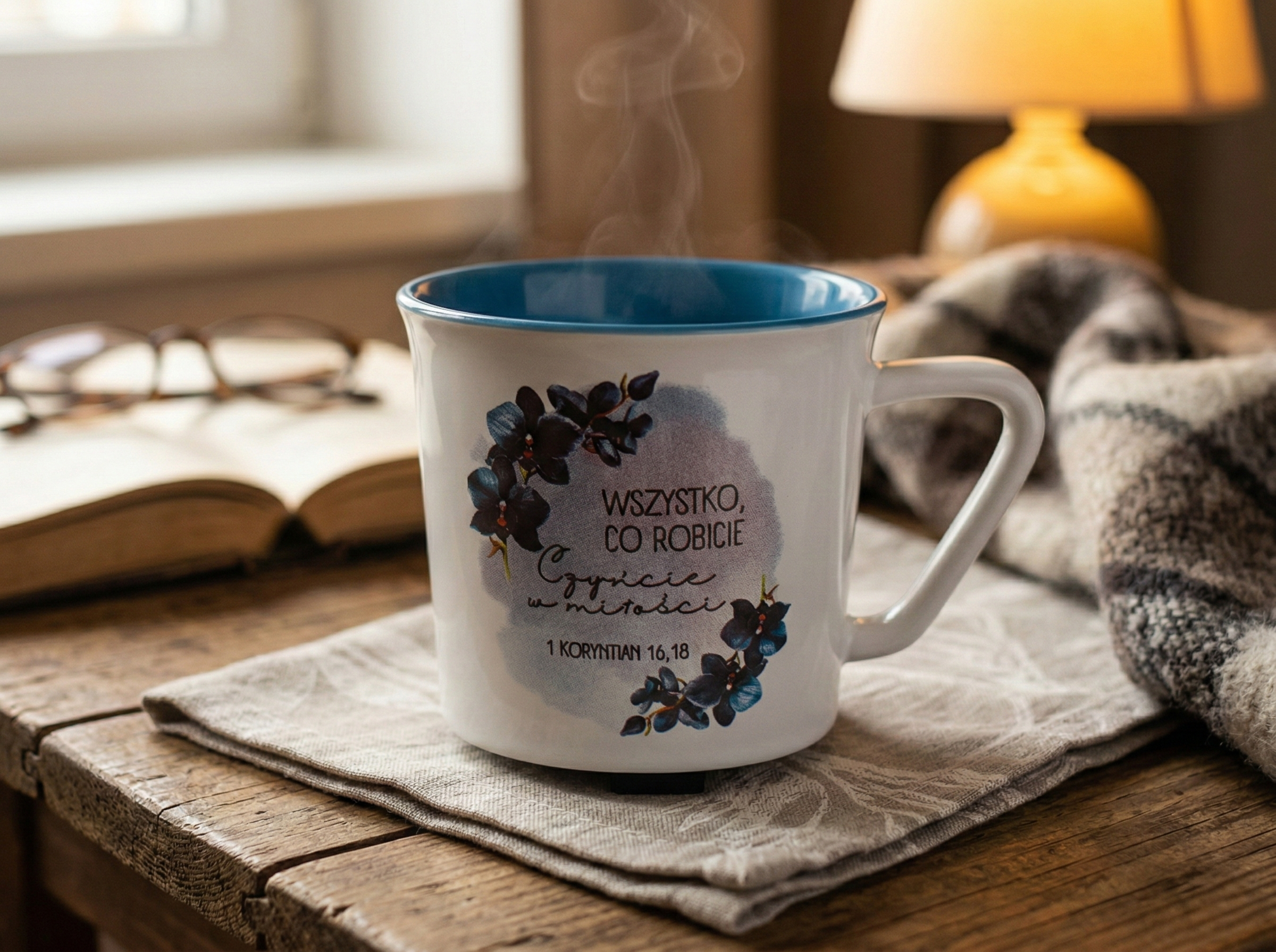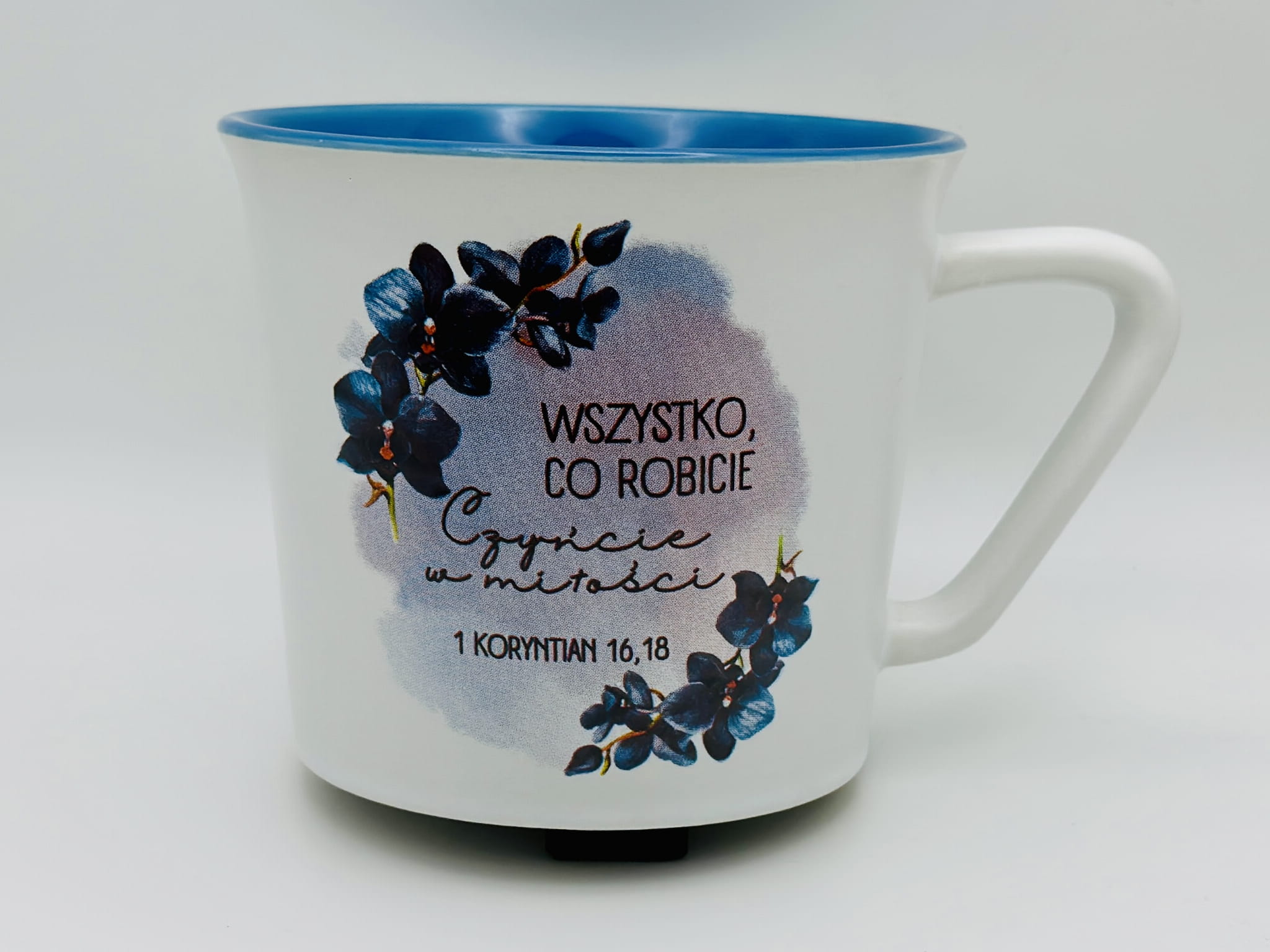 "Wszystko co robicie..." kubek kielichowaty, niebieski