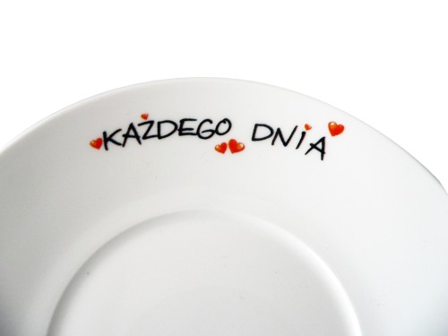 1. Kubek ceramiczny z kolorowym nadrukiem serce oraz napisem "Bóg Cię kocha".